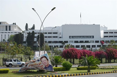 | L'Assemblée nationale du Pakistan à Islamabad, le 3 avril 2022, jour du débat de la motion de censure contre le Premier ministre Imran Khan. |