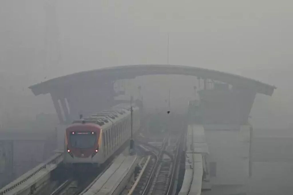 | Le métro aérien dans le smog à Lahore le 3 novembre. |