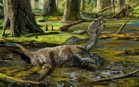 | Une graphique d'une nouvelle espèce d'un dinosaure à plumes, baptisé "Tongtianlong limosus". |