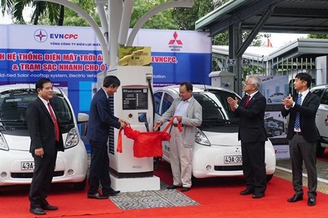 4. "Recherche et développement de bornes de recharge rapide pour voitures électriques selon les normes CHAdeMO pour promouvoir et encourager l’utilisation des voitures électriques au Vietnam", d’un groupe du Centre de production d’équipements de mesure électronique, de l’Électricité de la région Centre du Vietnam.