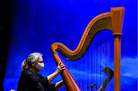 | Une harpiste lors de l'opéra La Bohème dans le cadre du festival du Palm Beach Opera, à Palm Beach en Floride, le 19 février. |