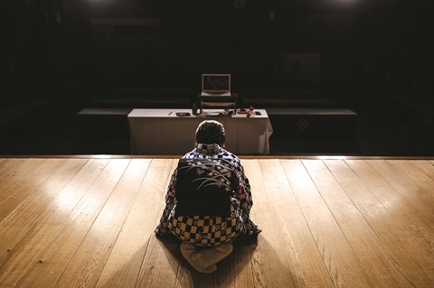 | La geisha "Chacha" lors d’une répétition pour une soirée en ligne à Hakone, au Japon. |