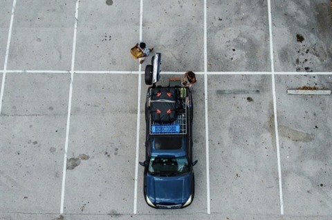 | Vue aérienne du Toyota de l’Italien Aldo Giaquinto et son épouse moldave Vera Kozlovskaia dans un parking de Miami. |