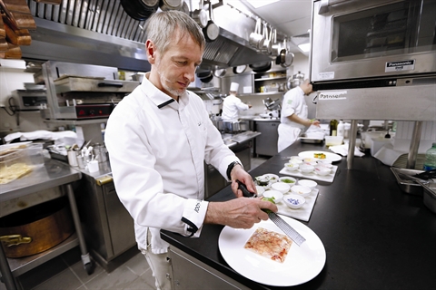 | Le chef étoilé italien Paolo Sari au restaurant Monte-Carlo Beach, à Monaco. |