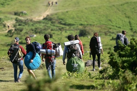 | Des randonneurs descendent le pic du Mondarrain près d'Itxassou, le 21 mai dans les Pyrénées-Atlantiques. |