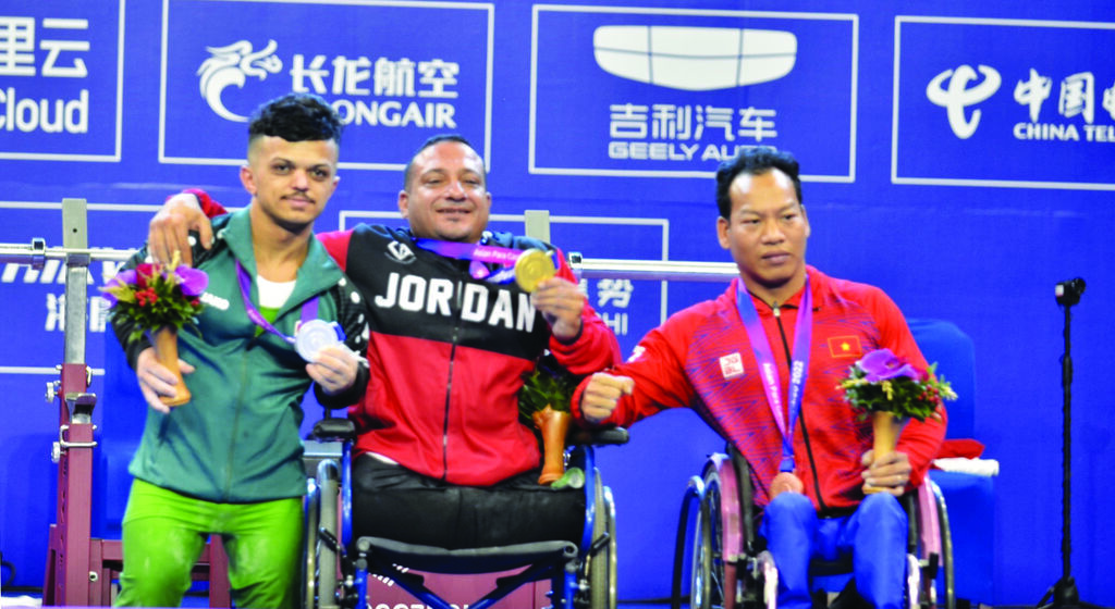 | Le powerlifteur Nguyên Binh An (centre) aux ASIAN Para Games 4. |