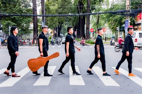 | Chi Thanh (avec la guitare) participe à un projet musical au Vietnam. |