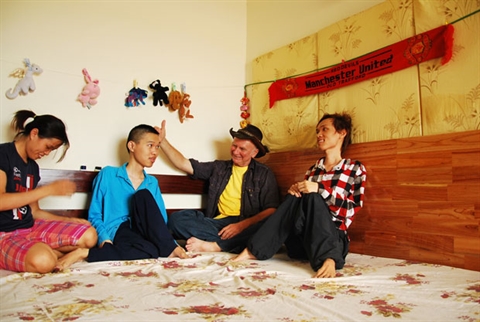 | L’ex-marine de guerre US aux côtés des jeunes victimes de l’agent orange. |