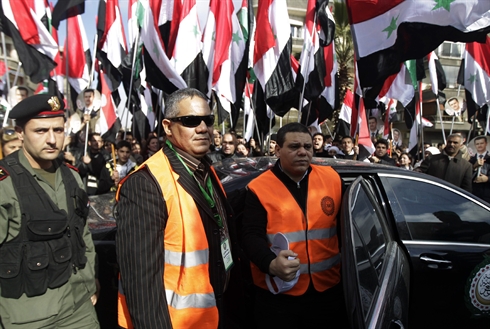| Des observateurs de la Ligue arabe le 9 janvier à Damas. |