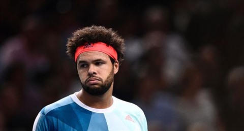 | Jo-Wilfried Tsonga lors de son match perdu contre Milos Raonic à Paris-Bercy, le 4 novembre 2016. |