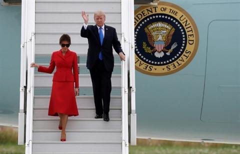| Le président américain Donald Trump et la Première Dame Melania Trump débarquent à Orly le 13 juillet. |