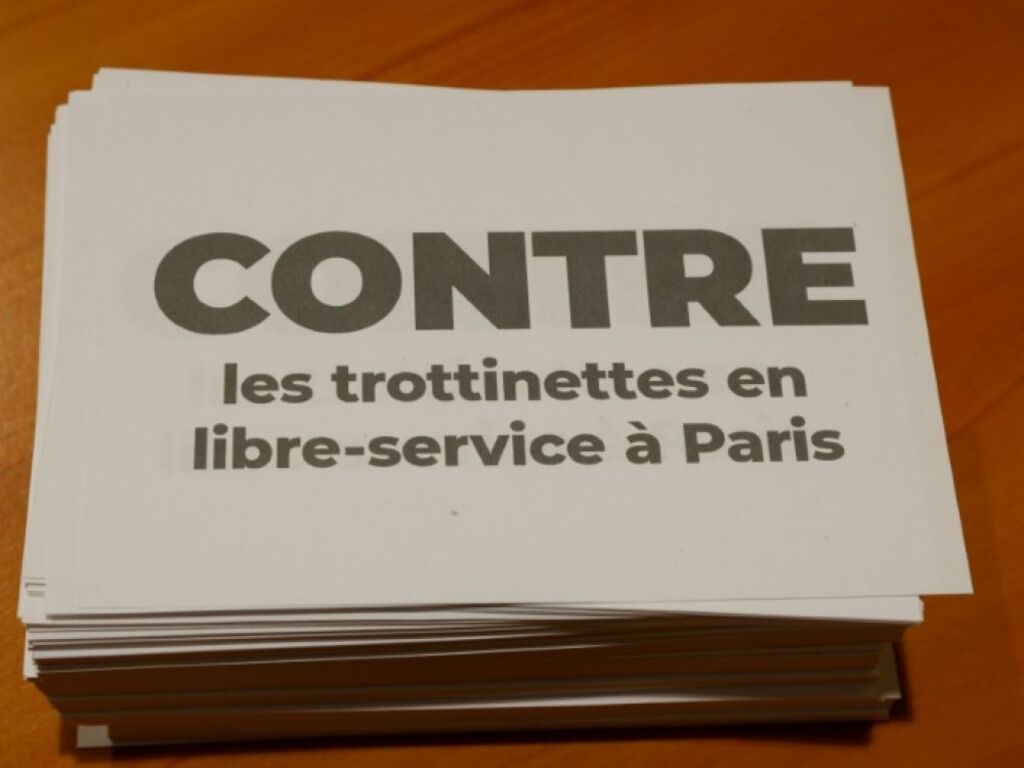 | Un bulletin "contre" les trottinettes en libre-service dans le cadre de la consultation organisée par la mairie de Paris, le 2 avril. |
