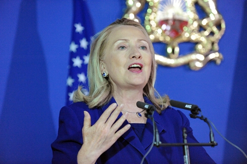 | La secrétaire d'État américaine Hillary Clinton lors d’une conférence de presse, le 26 février à Rabat. |