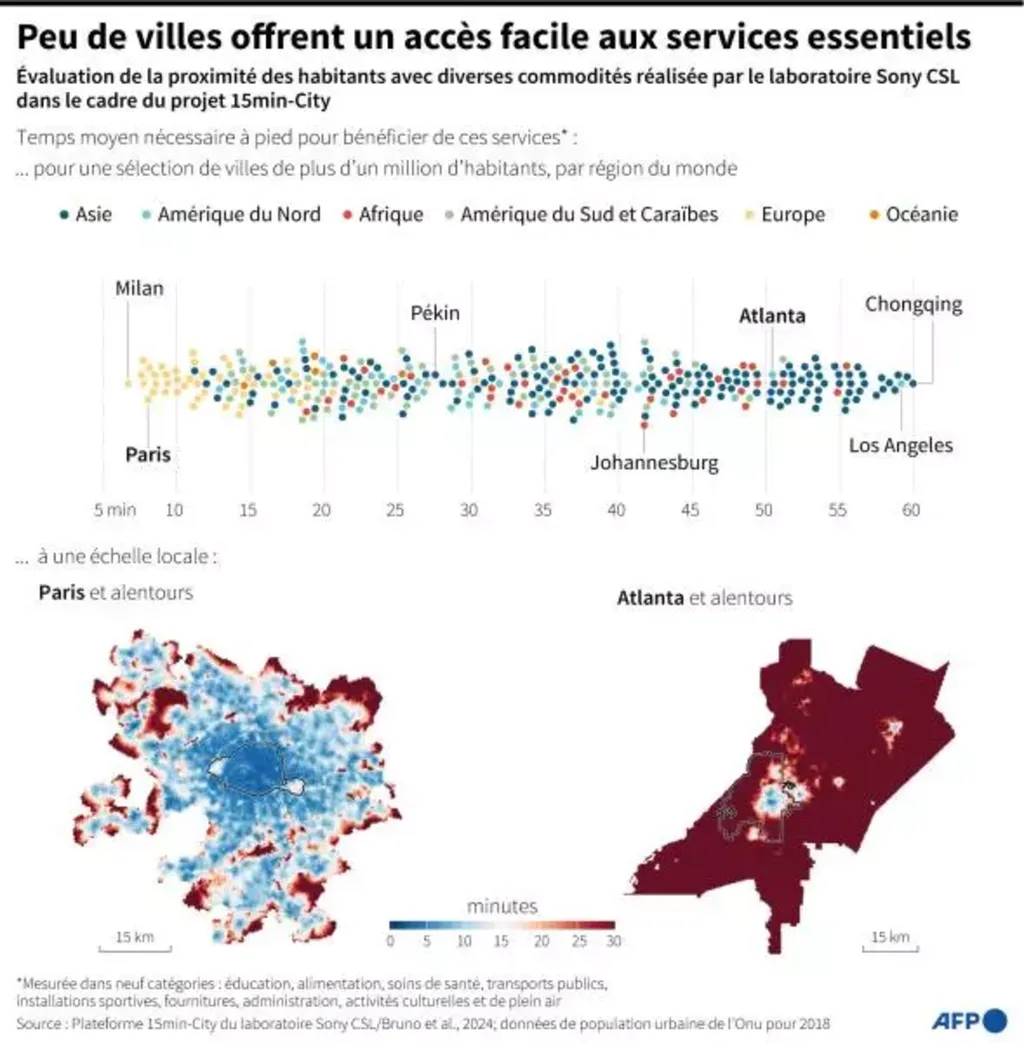 Parmi les plus grandes, "Paris est une exception", souligne M. Bruno, chercheur au Sony Computer Science Laboratories à Rome. La mairie a adopté le concept en 2020 et aujourd'hui une "portion considérable" de la ville est passée sous la barre du quart d'heure, selon l'étude.