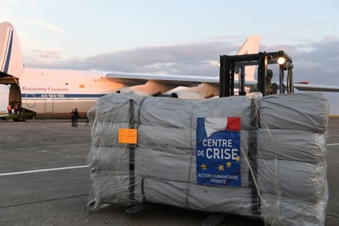 Paris a fourni le fret, évalué à 400.000 euros, la Russie se chargeant du transport. Pendant trois heures, équipements médicaux, tentes, kits de cuisine et couvertures ont été embarqués dans le ventre béant du cargo.