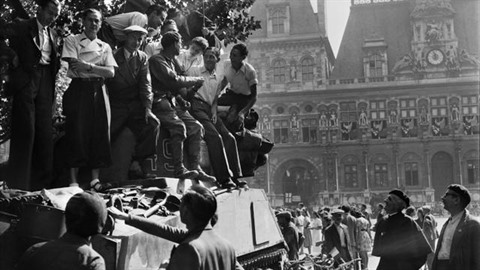| La foule accueille les troupes alliées devant l'Hôtel de Ville de Paris, le 25 août 1944. Photo: AFP/VNA/CVN |