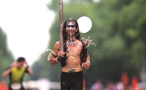 | Lors du marathon de Long Biên organisé en octobre 2018 à Hanoï, Hoa Viêt était déguisé en Indien d’Amazonie. |