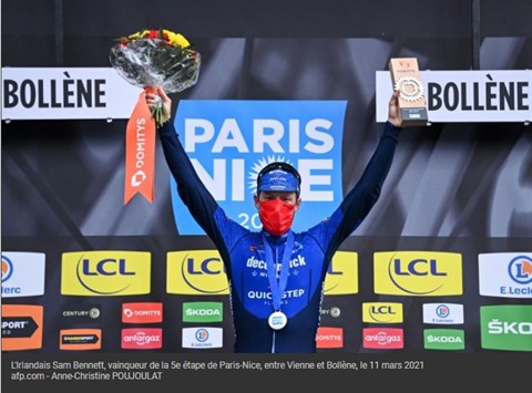 "Je vais maintenant songer à Milan-Sanremo", a commenté Sam Bennett après son sprint victorieux, le deuxième depuis le départ de Paris-Nice. Sanremo, la première grande classique de la saison que briguera aussi... Alaphilippe, deux ans après son succès magistral sur la Via Roma.