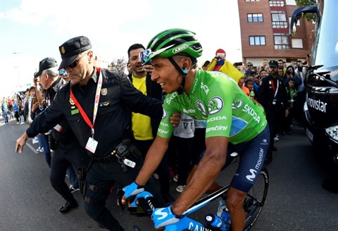 | Nairo Quintana alors sous les couleurs de la Movistar, le 11 septembre 2019 lors du Tour d'Espagne. |
