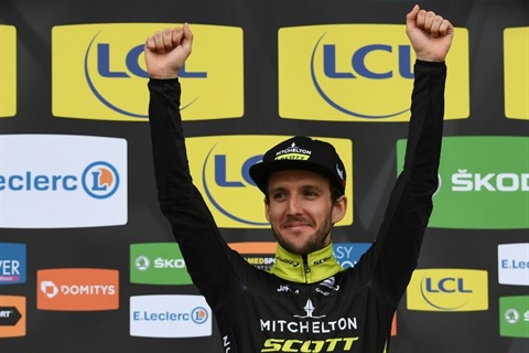 | Le coureur de la Mitchelton Simon Yates vainqueur de la 5e étape de Paris-Nice à Barbentane, le 14 mars. |