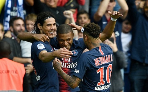 | Cavani (gauche), Mbappé (centre) et Neymar buteurs lors de la victoire face à Angers 3-1 en 3e journée de L1. |