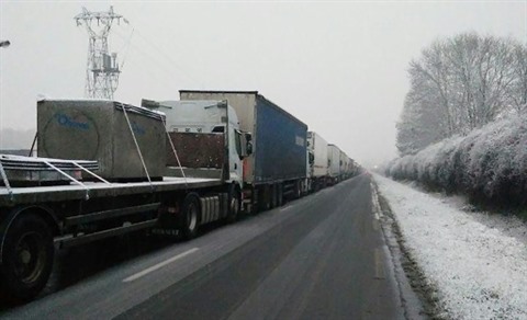 Dans le seul département des Yvelines, une centaine de poids lourds étaient bloqués entre Buchelay et Bonnières-sur-Seine sur l'autoroute A13 et 570 sur l'A10 au niveau du péage de Saint-Arnoult, a averti la préfecture vers 22h30 (21h30 GMT).