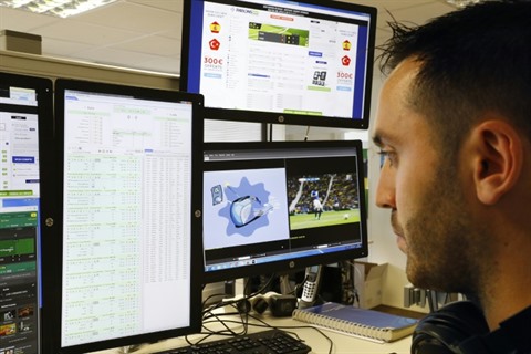 | Un employé de "Parions Sports", branche des paris sportifs au sein de la Française des Jeux, à Boulogne-Billancourt. |