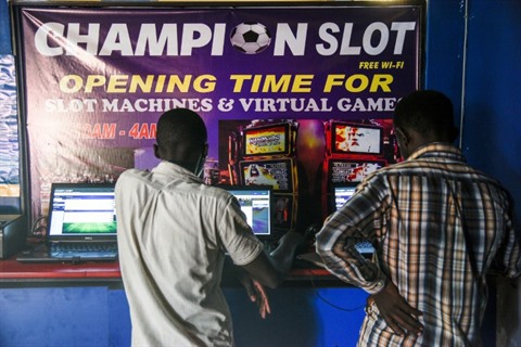 | Des parieurs ougandais effectuent des mises sur les matches de la Coupe du monde, juste avant le coup d'envoi du tournoi, le 14 juin à Kampala. |