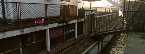 | La péniche Louise-Catherine, à l'époque centre d'accueil de jour de l'Armée du Salut, à Paris le 17 décembre 2001. |