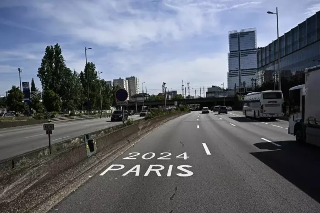 | Voie réservée sur le périphérique parisien lors des Jeux olympiques 2024. |