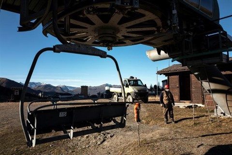 | Remontées mécaniques vides à Sestriere, au Piémont, en Italie, le 26 novembre |
