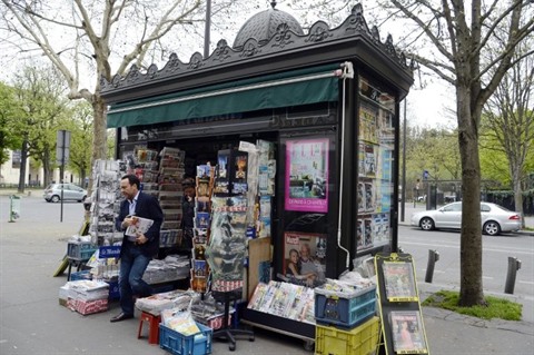 | Un kiosque à journaux à Paris, le 16 avril 2013. |