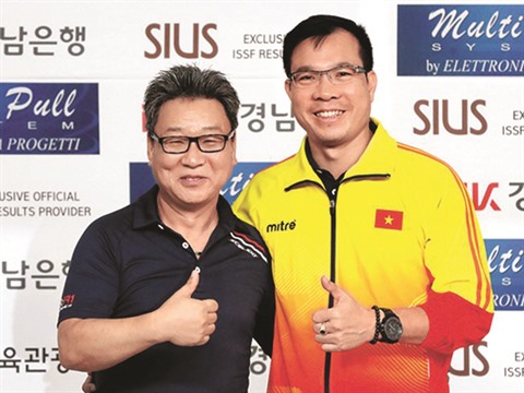 | Park Chung Gun (gauche), l’homme qui se cache derrière la réussite du tireur Hoàng Xuân Vinh. |
