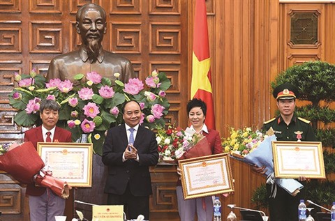 | Le Premier ministre Nguyên Xuân Phuc (2e à gauche) a décerné, en 2016, l’Ordre de l’Amitié à Park Chung Gun (1er à gauche). |