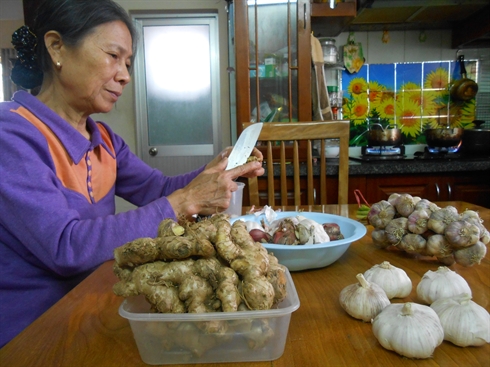 | Toute ménagère s’approvisionne en gingembre et ail, condiments qui ne peuvent manquer à certains plats du Nouvel An lunaire. |