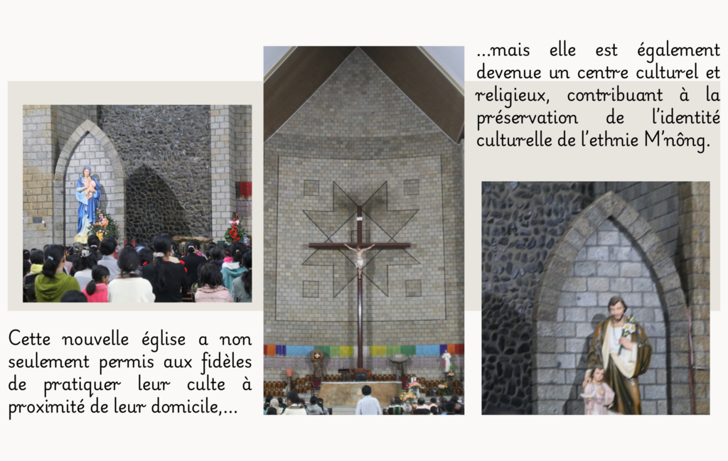 En 2004, avec la création du district de Dam Rông, le Comité populaire de la province de Lâm Dông (Hauts plateaux du Centre) a facilité la construction de l’église de Da Tông en 2007, achevée en 2009. Cette nouvelle église a non seulement permis aux fidèles de pratiquer leur culte à proximité de leur domicile, mais elle est également devenue un centre culturel et religieux, contribuant à la préservation de l’identité culturelle de l’ethnie M’nông.
