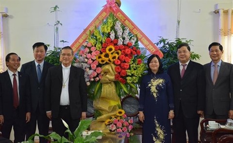 À l'Église adventiste du septième jour basée dans l’arrondissement de Phu Nhuân, le vice-président et secrétaire général du FPV, Lê Tiên Châu, a souhaité au chef de l'église, le pasteur Trân Thanh Truyên, et à ses fidèles une saison de Noël heureuse et paisible.