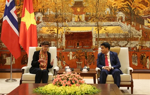 "Hanoï souhaite également coopérer avec des entreprises norvégiennes dans le développement des énergies renouvelables et dans la mise en œuvre de projets de production d'électricité à partir de déchets, ainsi que pour l’amélioration du réseau d’électricité" a-t-il ajouté. Le dirigeant de Hanoï a demandé à l’ambassadrice Grete Lochen de jouer le rôle de passerelle contribuant à l’intensification des relations entre les deux pays.