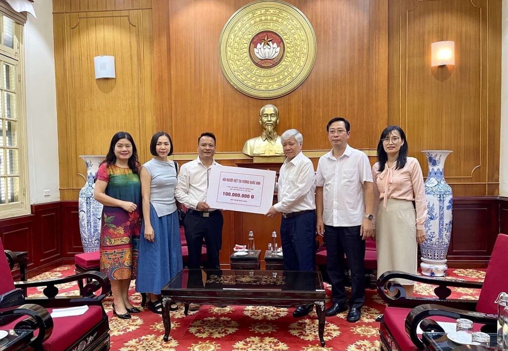 | Le 27 septembre, au siège du Comité central du Front de la Patrie à Hanoï, Tang Tuân Tu (3e à gauche), président de l'Association vietnamienne au Royaume-Uni a remis 100 millions de dôngs pour soutenir la population sinistrée. |