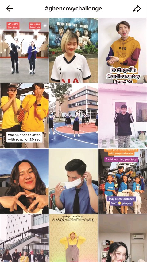 Pendant le pic de l’épidémie, de nombreux réseaux sociaux ont diffusé des messages positifs, notamment sur l’application TikTok qui a collaboré avec le ministère vietnamien de la Santé, le Comité central du Front de la Patrie, l’UNICEF et le groupe IGV pour lancer la campagne "La joie chez soi", encourageant tout le monde à rester à la maison pour lutter contre le COVID-19. TikTok a appelé ses utilisateurs à partager via de courtes vidéos des scènes de vie quotidienne (cuisine, pratiques sportives, études) ou des activités originales comme s’habiller de manière extravagante, faire un défilé de mode, danser en freestyle, etc.