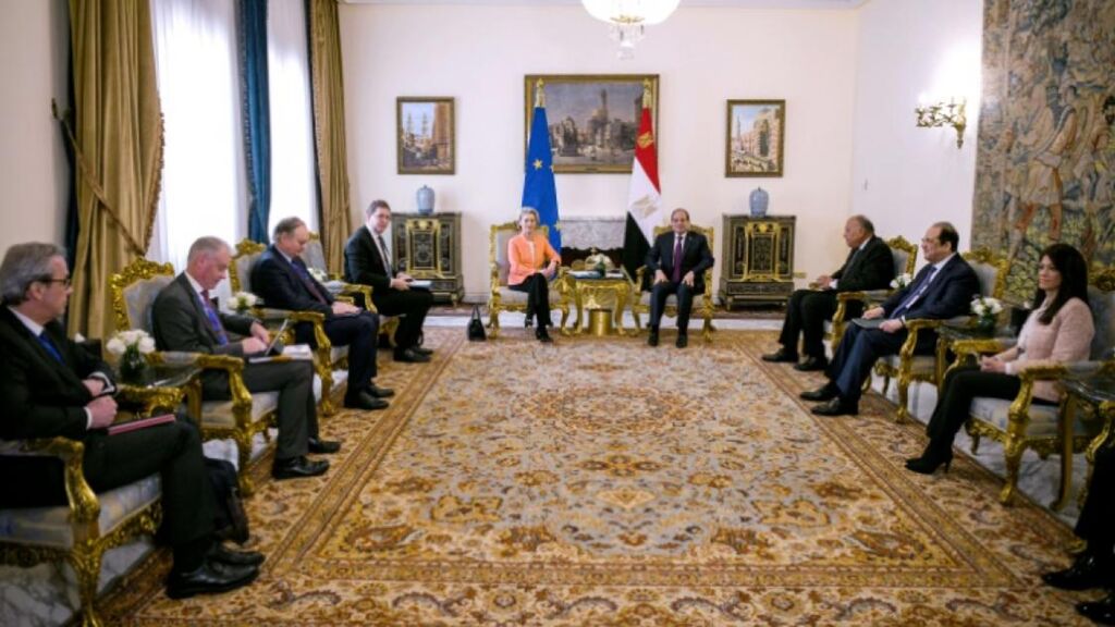 L'accord a été signé en fin de journée au Caire entre le président égyptien, Abdel Fattah al-Sissi, et la présidente de la Commission européenne, Ursula von der Leyen, aux côtés de cinq chefs d'État et de gouvernements européens.