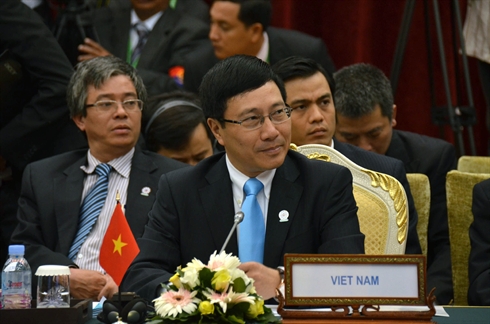| Le ministre vietnamien des Affaires étrangères Pham Binh Minh (premier plan). |