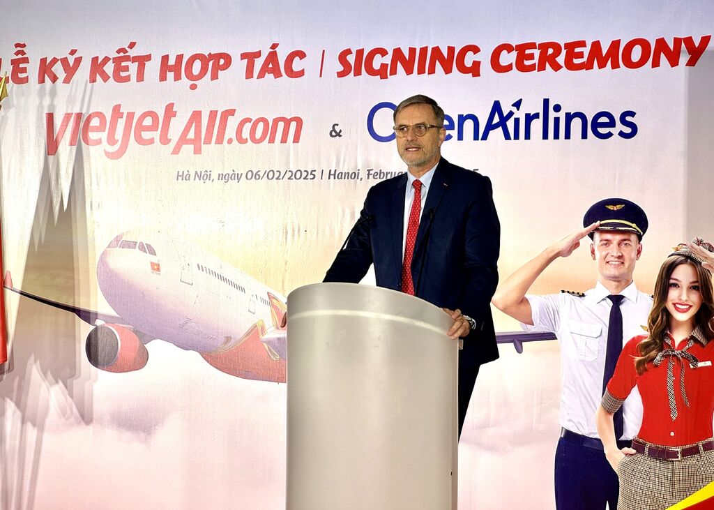 | Le CEO d’OpenAirlines, Alexandre Feray, s’est réjoui de ce nouveau partenariat avec Vietjet pour améliorer la mise en place de la technologie et l’innovation dans l'aviation. |