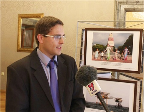 | Le journaliste tchèque Pavel Herman lors d'une interview de l'Agence Vietnamienne d'Information. |