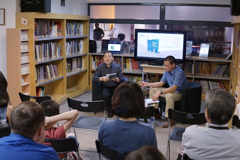 | Les Dr Trân Doàn Lâm (gauche) et Dinh Hông Hai à la table ronde, le 7 mai à l’Espace - Institut français de Hanoï. |