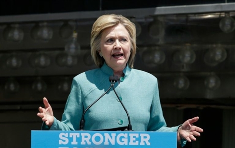 | La candidate démocrate à la Maison Blanche Hillary Clinton lors d'un discours à Atlantic City, dans le New jersey, le 6 juillet. |