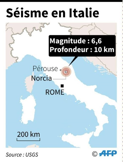 Une forte secousse sismique, de magnitude 6,6 selon l'Institut américain de géologie (USGS), a de nouveau frappé dimanche 30 octobre vers 07h40 (06h40 GMT) le centre de l'Italie, quatre jours après deux séismes dans cette même région, selon les autorités. L'institut italien de sismologie a fait état de son côté d'une secousse d'une magnitude de 6,1.