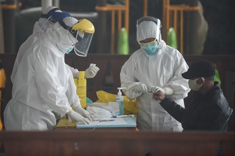 | Test de dépistage du coronavirus, le 8 avril à Nam Tangerang, en Indonesia. |