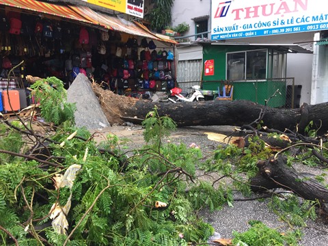 | Un arbre séculaire arraché dans la rue Nguyên Trai à Hô Chi Minh-Ville. |