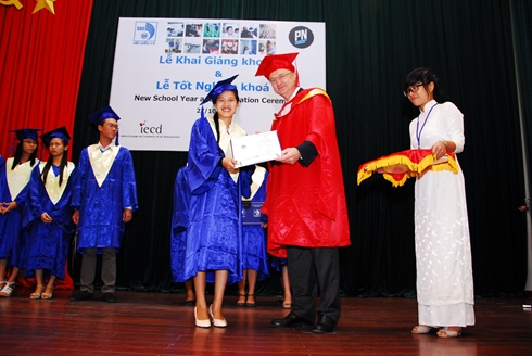 | Benoi Genuini remet des diplômes à des étudiants vietnamiens. |